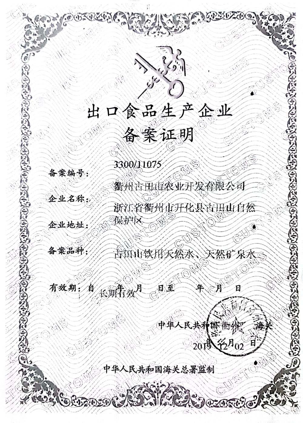 食品出口证明